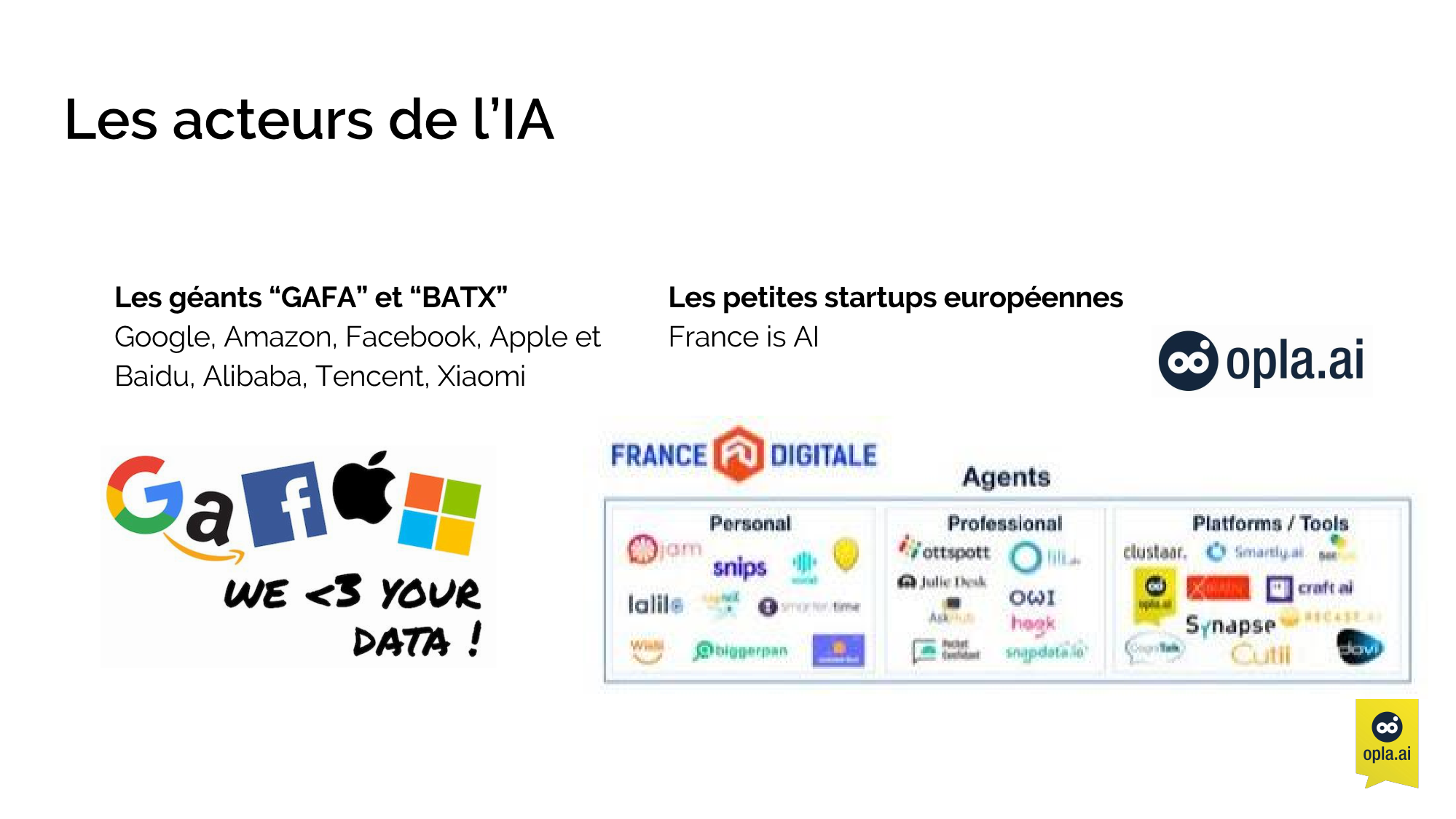 Mik souligne qu’au niveau européen, nous sommes en phase de nous « enfermer » et d’être obligés d’utiliser les chatbots populaires. N’en déplaise aux petites startup du domaine chatbot, les leaders dominent le marché. Mais que font-ils de nos données? C’est pourquoi chez Opla, une la transparence des informations est devenue une valeur cardinale.