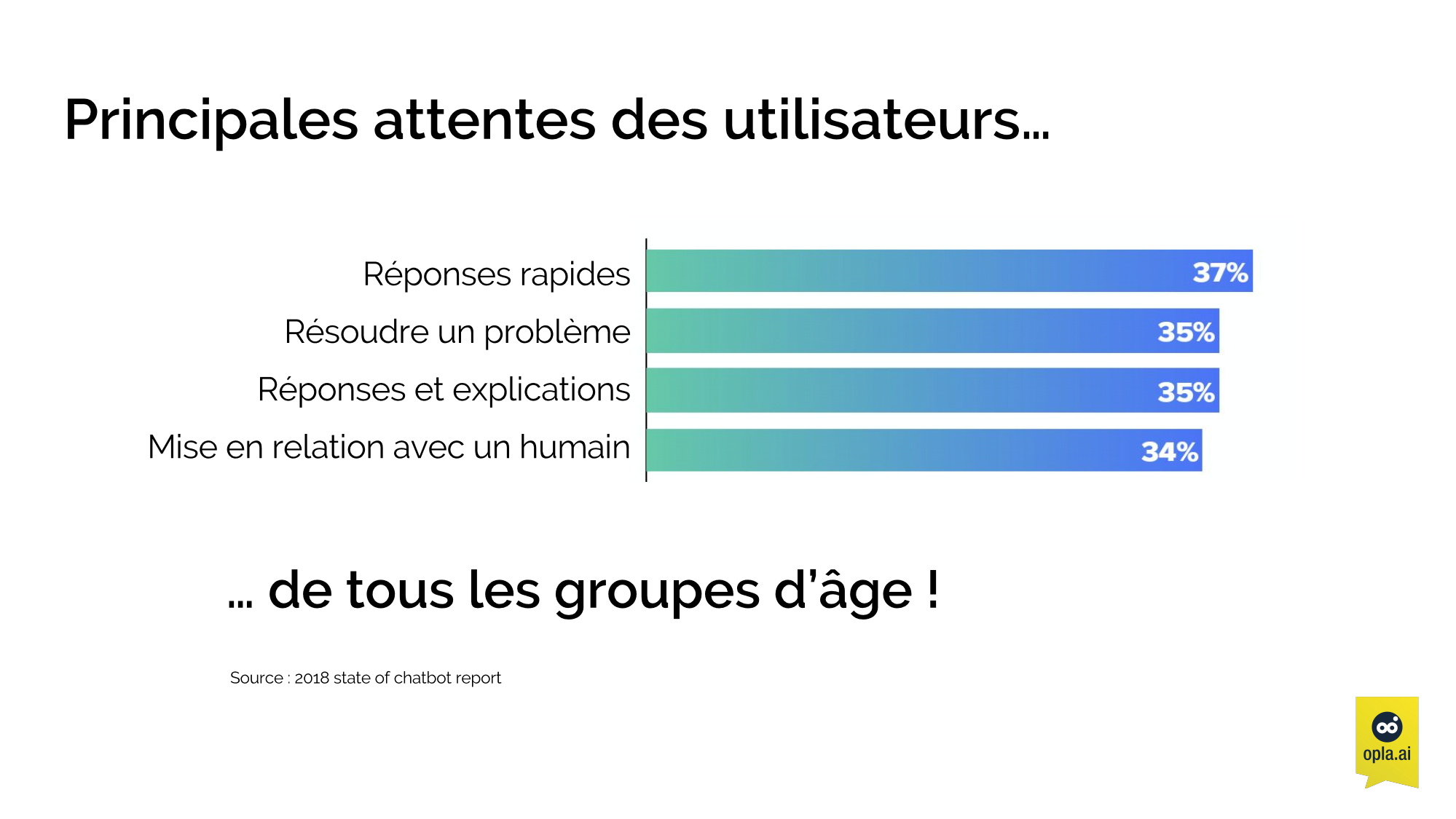 Qu’est-ce qu’un chatbot? C’est l’association du mot “chat” (conversation) et “bot” (robot). Vous l’aurez compris, un chatbot ne représente ni plus ni moins qu’un robot capable de converser. Avec qui? Comment? Pourquoi? C’est ce que nous explique ici le groupe Opla.ai. Un chatbot essaie le plus fidèlement possible de reproduire le comportement humain, afin de résoudre des problématiques. Par ce biais, l’homme tente de s’extraire des tâches les plus ingrates, en les distribuant aux IA [Intelligences Artificielles].