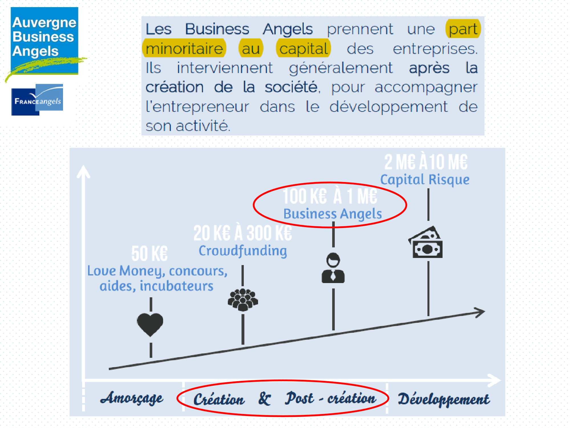 Les B.A. interviennent dans la « phase d’amorçage« , où le risque est relativement important et où les banques ont besoin d’un effet de levier. L’apport des B.A. permet d’obtenir des financements bancaires souvent triples.