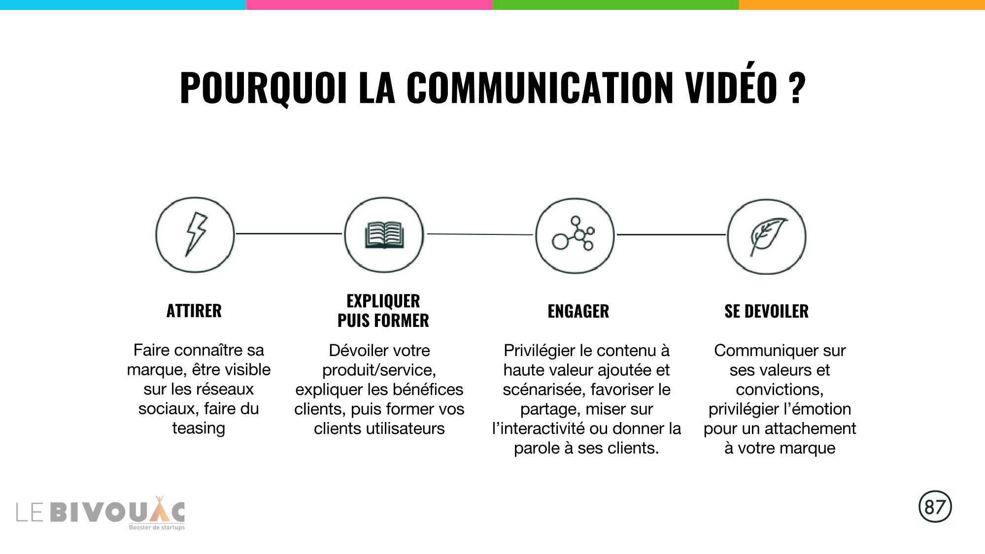 Enfin, la communication par l’humour fonctionne bien en vidéo, même s’il peut être dangereux quand il n’est pas bien maîtrisé.