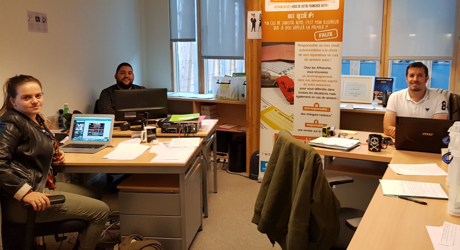 S : Moi j’ai fait des études supérieures dans l’assurance et le droit. J’ai travaillé au sein du groupe la Poste, pour la protection des salariés en interne, mais à un moment je me suis rendu compte que les salariés hors véhicule (à pied, en vélo) n’étaient pas protégés. J’ai constaté les abus des assureurs, qui ne proposaient quasiment rien en cas d’agression animale sur un facteur, par exemple. J’ai voulu travailler à renégocier les offres des assureurs, et ça a fonctionné puisqu’on est monté à x10 en indemnisation. Et, en 2015, je suis tombé sur un article parlant des Affranchis dans “Que Choisir” L’approche m’a beaucoup plu, ils étaient à Aubière, juste à côté de chez moi… Fin 2015, je rejoignais l’entreprise.