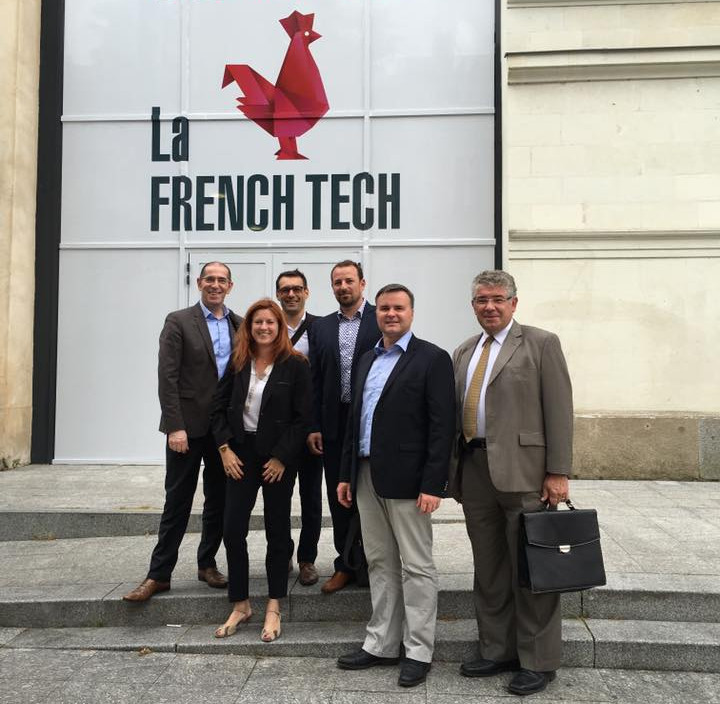 L’équipe et les partenaires French Tech Clermont, juste après avoir défendu le dossier qui allait nous attribuer la labellisation (en juillet 2016). Guillaume est entouré de Benoît Membré, Hélène Ribeaudeau, Guillaume Blanc, Fabien Marlin et Marc Evangelista.