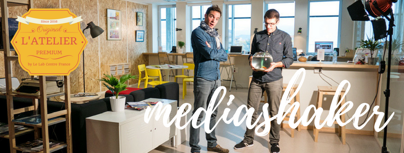 Raphaël avec son collègue Quentin Jaud, (et leurs poissons rouges) au sein de l’Atelier du Lab, au siège du groupe Centre France.