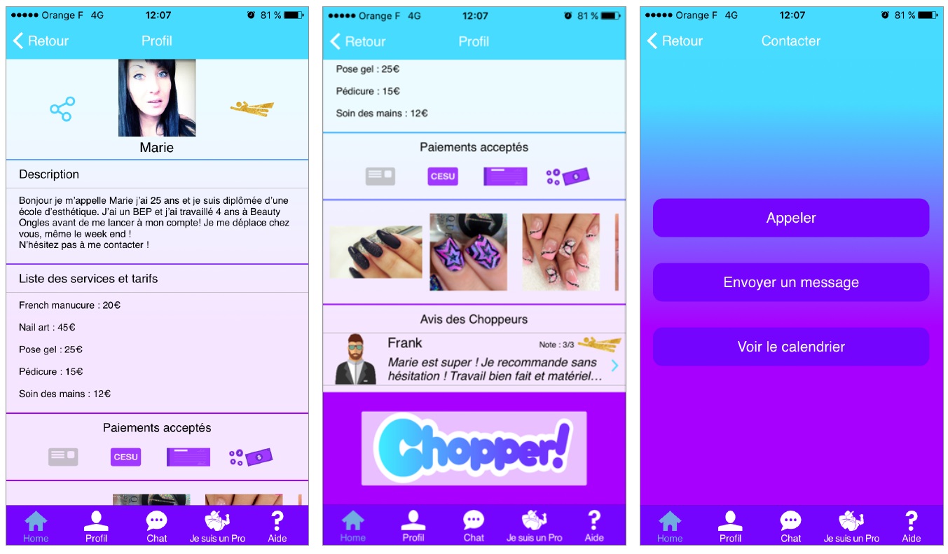 Vous êtes sans doute nombreux à connaître ce fameux TED Talk de Simon Sinek intitulé « start with why« : c’est (visiblement) le principe moteur de Kim quand elle a imaginé ChopchopUnPro. Côté constat, les pros à domicile sont souvent des personnes passionnées mais qui ont du mal à vivre de leur métier favori, et qui doivent cumuler des « emplois alimentaires ». Côté solution, une plateforme numérique, sur mobile, de mise en relation avec l’utilisateur sur une base de notation – donc de confiance. La « vision » de ChopchopUnPro est donc d’aider les professionnels à vivre de leur passion en les mettant en avant. Les « super pros » inscrits sur la base vont donc bénéficier de visibilité via le référencement et, in fine, d’un revenu complémentaire qui pourra les aider à joindre les deux bouts. Pour ceux qui sont très bons dans leur job mais qui ne sont pas à l’aise avec l’aspect commercial, cette appli peut être du pain béni.